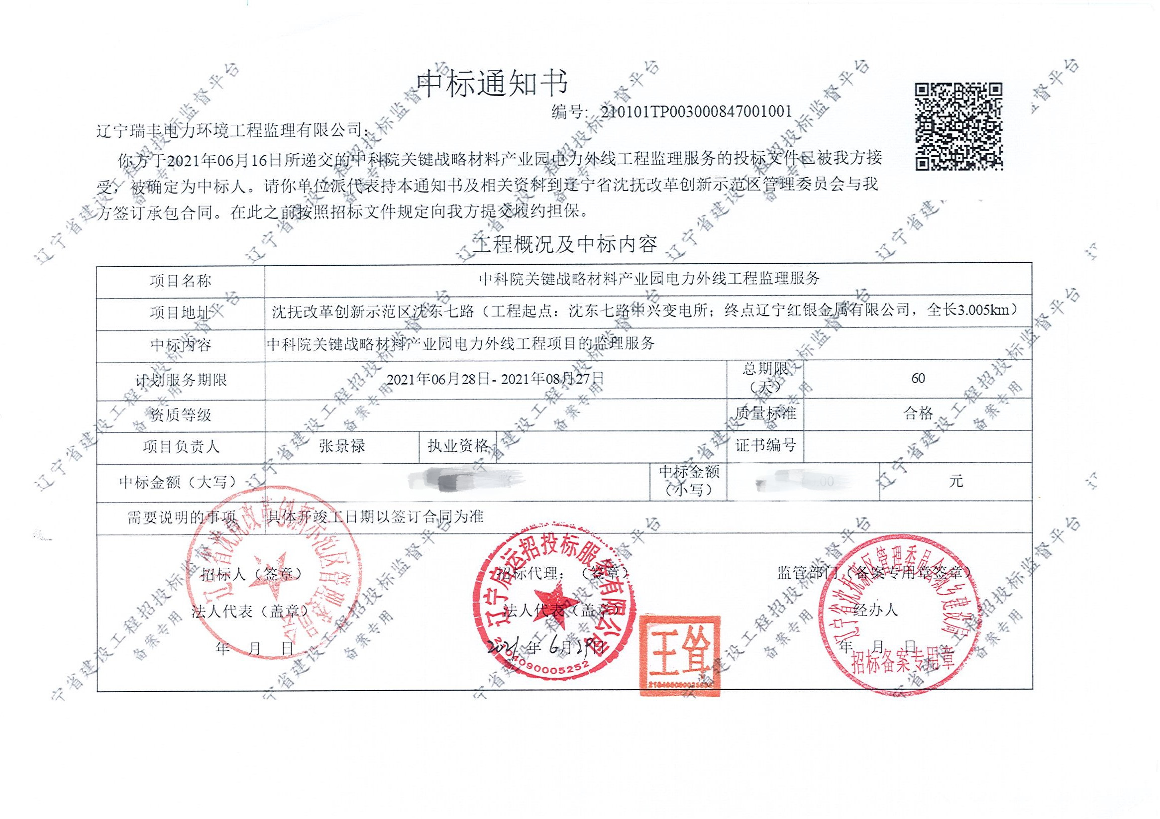 中標(biāo)喜訊-中科院關(guān)鍵戰(zhàn)略材料產(chǎn)業(yè)園電力外線工程監(jiān)理服務(wù)