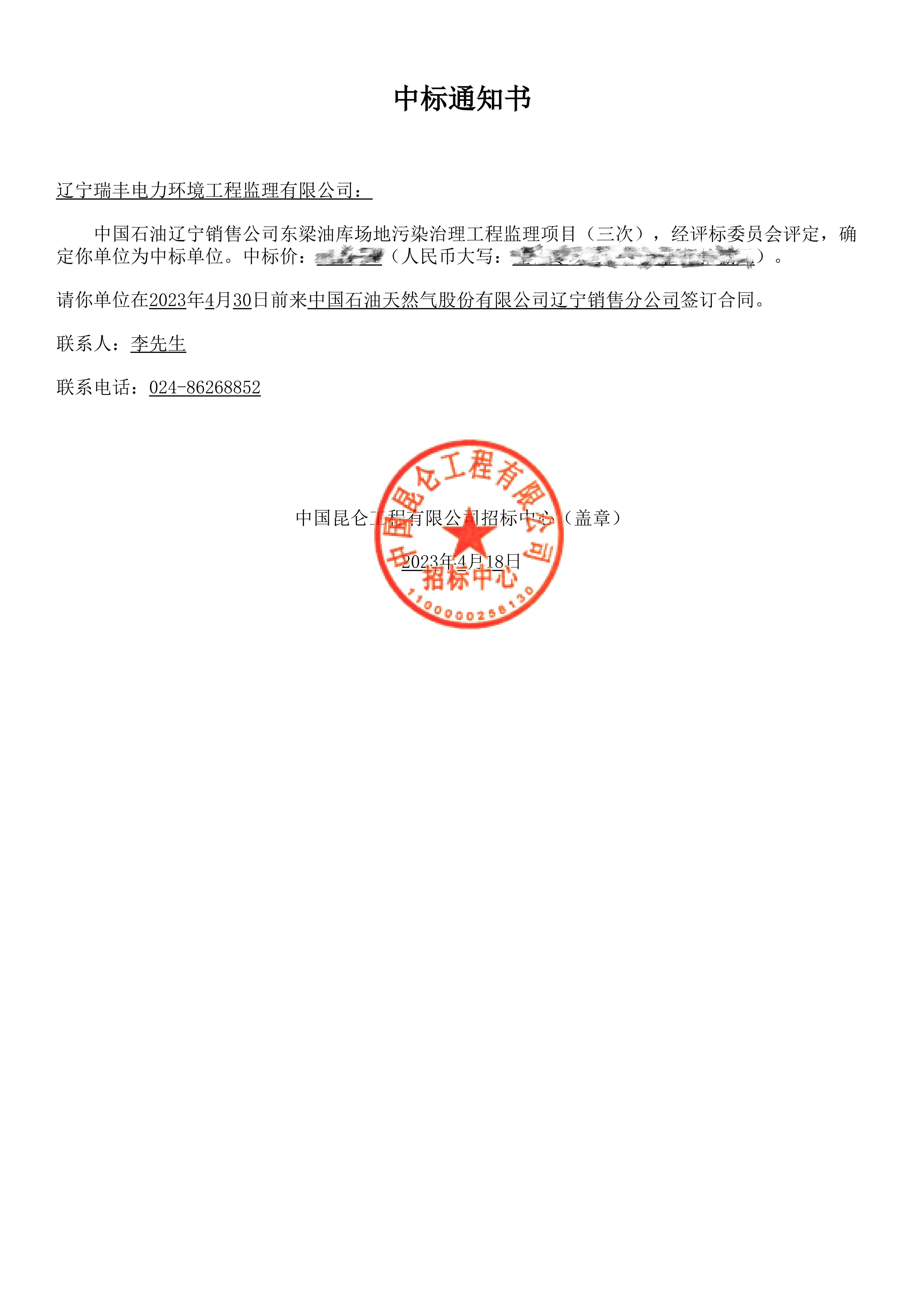 中標喜訊-中國石油遼寧銷售公司東梁油庫場地污染治理工程監(jiān)理