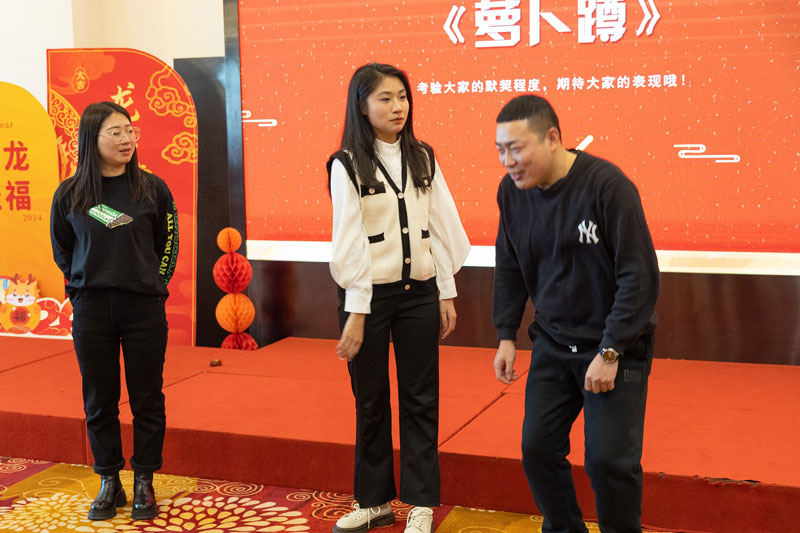 會(huì)議圓滿結(jié)束后,緊接著拉開(kāi)了新春聯(lián)歡會(huì)的序幕。各公司員工紛紛獻(xiàn)上了自編自演的精彩節(jié)目,為現(xiàn)場(chǎng)觀眾帶來(lái)了歡樂(lè)與驚喜。集團(tuán)辦公室主任王倩擔(dān)任聯(lián)歡會(huì)主持人,并巧妙地穿插了多個(gè)互動(dòng)游戲,使現(xiàn)場(chǎng)氣氛更加熱烈。其中,監(jiān)理公司的總監(jiān)理周長(zhǎng)勝、解玉恒、劉鑫分別獻(xiàn)上了一曲動(dòng)人的歌曲,總監(jiān)滕達(dá)和總監(jiān)席得純則合作表演了一段詼諧幽默的相聲,贏得了在場(chǎng)觀眾的陣陣掌聲。