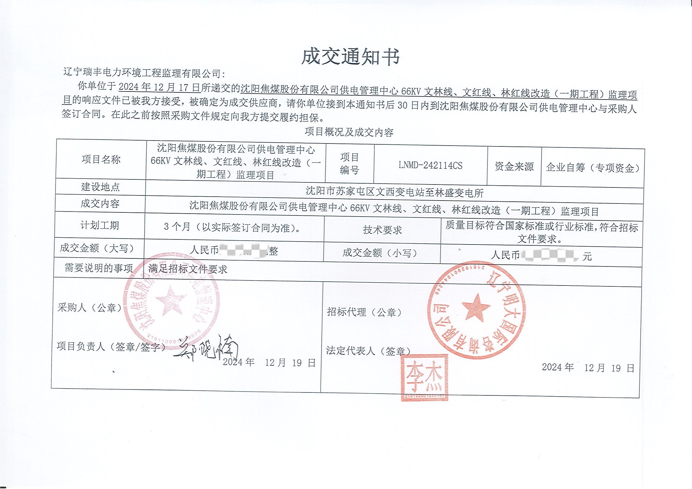 中標喜訊-沈陽焦煤股份有限公司供電管理中心 66KV 文林線、文紅線、林紅線改造(一期工程)監(jiān)理項目