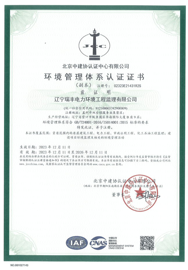 主辦單位:遼寧瑞豐電力環(huán)境工程監(jiān)理有限公司