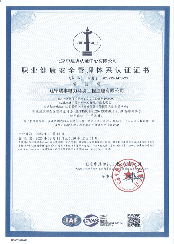 職業(yè)健康安全管理體系認(rèn)證證書2